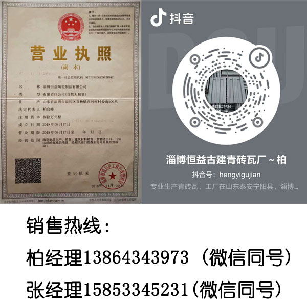 淄博恒益陶瓷制品有限公司位于山東淄博建陶工業園,有悠久的陶瓷生產歷史,豐富的陶瓷原料資源,交通便利,出門即是205國道,產品繼承傳統工藝生產,并獲得非遺傳承人,產品制作精良,古香古色,健康環保,經1100度高溫燒成,不褪色。特別是運用了現代真空抽制技術,更是增強了產品的內在和外觀質量,強度更高,密實度更強。廣泛使用于園林,別墅,景觀的建造,日漸成為仿古建筑的主力軍。